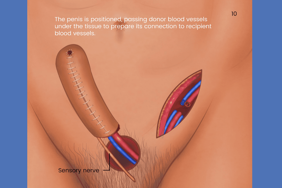 Dr. Ley will perform microsurgery to attach the blood vessels from the phallus to the blood vessels in the groin. This is to provide the penis with blood supply.