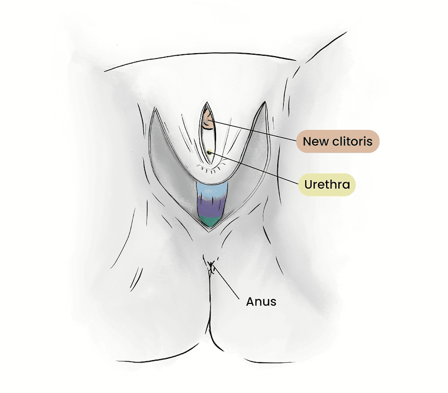 This incision will eventually be closed as the vulva is constructed, pictured below: