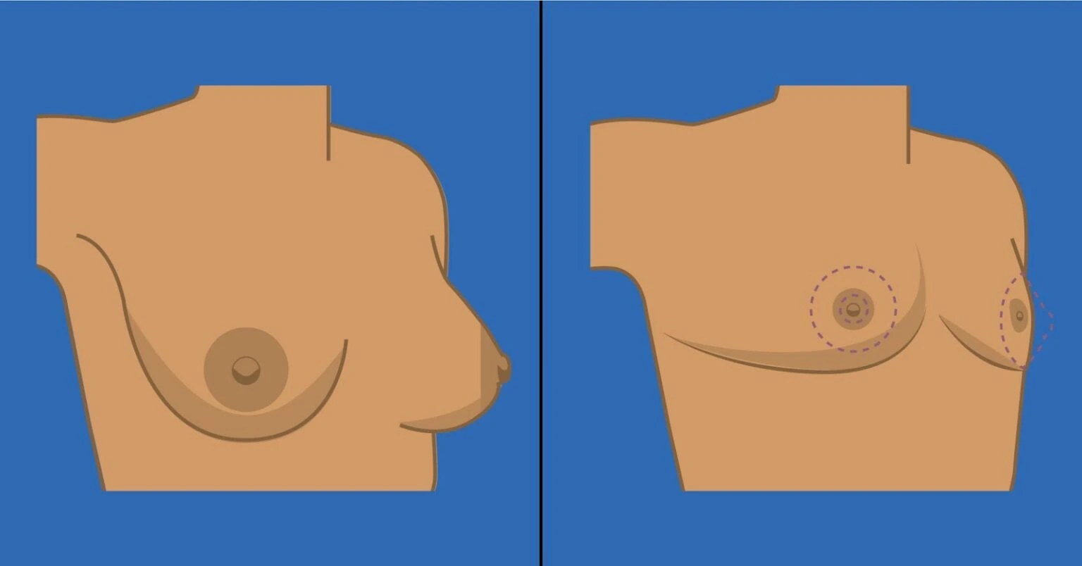 A composite nipple graft can be performed with any top surgery incision type, for either chest reconstruction or breast reduction, making it an option for all eligible top surgery candidates. The technique is composite because it involves two grafts: the areola and nipple are grafted separately, not together. This allows for the nipple to be cut and resized to meet the patient’s goals. The graphic below illustrates what this change can look like.