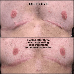 A scar revision surgery can be performed 6-12 months after your initial top surgery to ensure the scar formed is mature and won’t change before it is surgically removed. This will allow the surgeon to create a new and less noticeable scar.